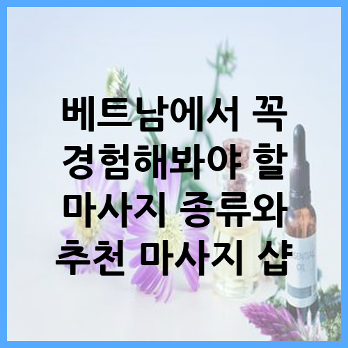 베트남에서 즐길 수 있는 마사지 종류와 추천 샵을 알아보면서, 베트남만의 독특한 마사지 문화를 경험할 준비를 해보세요.