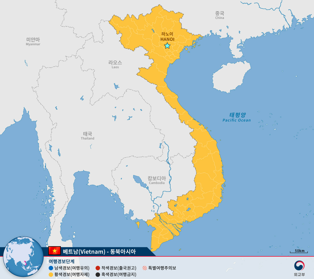 대한민국 국민은 베트남 비자 면제 프로그램에 따라 관광 목적일 경우,