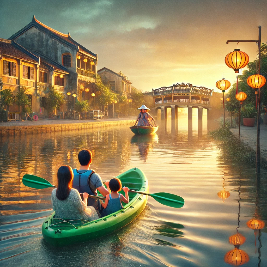 호이안 근처의 투본 강은 역사와 자연을 동시에 경험할 수 있는 독특한 카약 명소입니다.