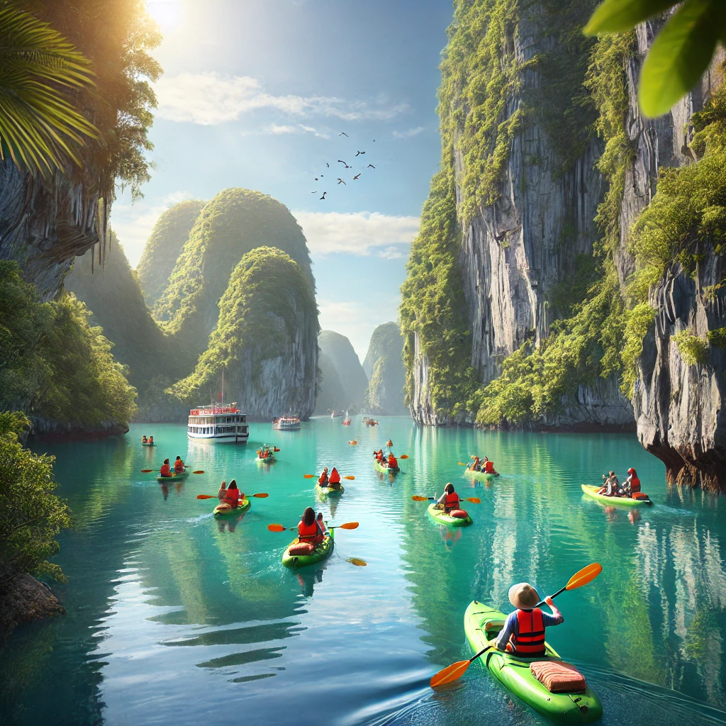 • 하롱베이: 석회암 섬들(카약, 크루즈 투어), 뚜안쩌우 섬(패들보드).